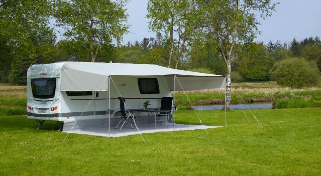 Rejser du rundt fra sted til sted om sommeren, er Loggia solsejlet det perfekte valg. Det vejer kun 8,5 kg (3 meter bredde) og 10,2 kg (4 meter bredde) og sættes direkte på campingvognen, hvorefter det rejses ved hjælp af 3 letvægts CarbonX stænger.
