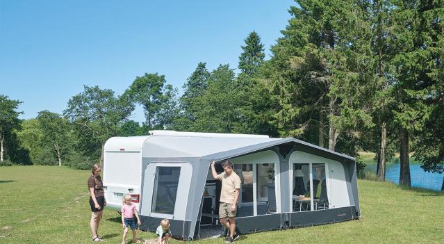 Le Ventura AIR Nova est un auvent gonflable spacieux sur mesure pour votre caravane qui rend les vacances en camping à la fois confortables et faciles.
