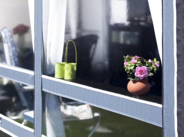 VILLA est conçu pour rester debout toute l'année et résister aux conditions météorologiques changeantes. Le toit spécialement conçu de VILLA est incliné, ce qui minimise l'accumulation de neige et réduit la charge sur l'auvent. Le matériau de la fenêtre peut résister à des températures allant jusqu'à moins 38 degrés, ce qui rend l'auvent utilisable en hiver.