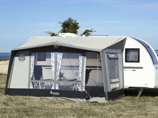 Den dubbla anslutningsvingen är utformad för att säkerställa att förtältet har en helt tät anslutning till husvagnen. På så sätt förhindras drag, vind och regn från att tränga in i förtältet.