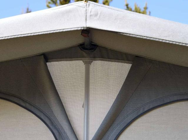 Alla Isabellas tält är konstruerade med gott om ventilationsmöjligheter. Det är viktigt att du utnyttjar dem - både i fronten och i gavlarna. Det minskar risken för kondens och ger dig ett bra inomhusklimat i förtältet.