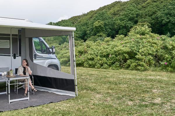 Create a cozy outdoor space in front of your caravan or motorhome with the Wind Side, which can be easily attached to your roll-out awning for extra shelter and comfort. Wind Side measures 240 cm in depth and mounting heights of 245-270 cm and roll-out awnings that are 250 cm in depth.