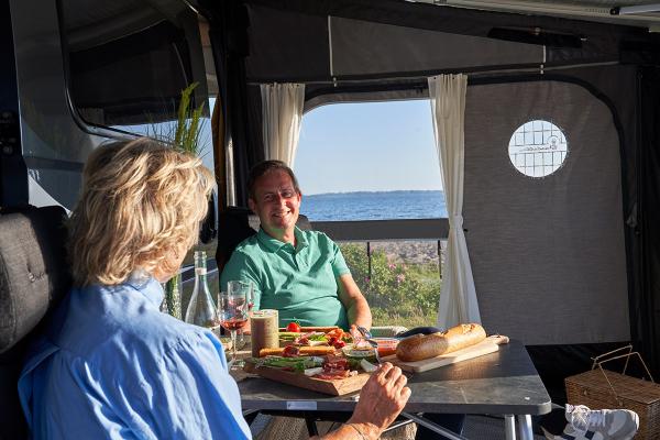 Durch die großen Fenster an der Front bietet sich ein ungehinderter Ausblick auf Ihre Umgebung. Die Fenster an der Buddy-Front sind mit Hilfe der Reißverschlüsse auch abklappbar. Dadurch kann mit der im Lieferumfang enthaltenen Verandastange eine Verandalösung gestaltet werden. Die Frontteile sind in vier verschiedenen Breiten erhältlich und sind für Markisen ab drei Metern geeignet.