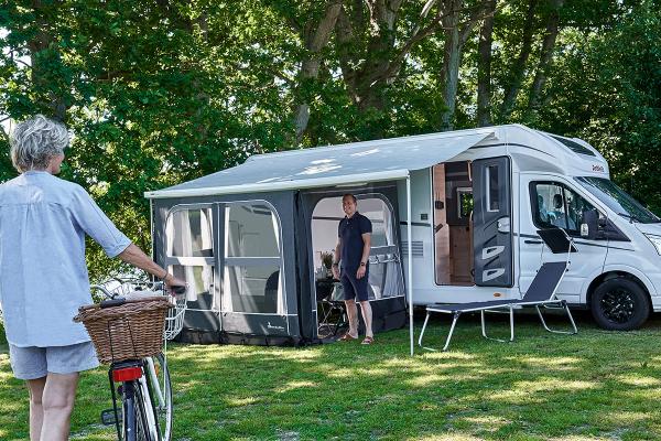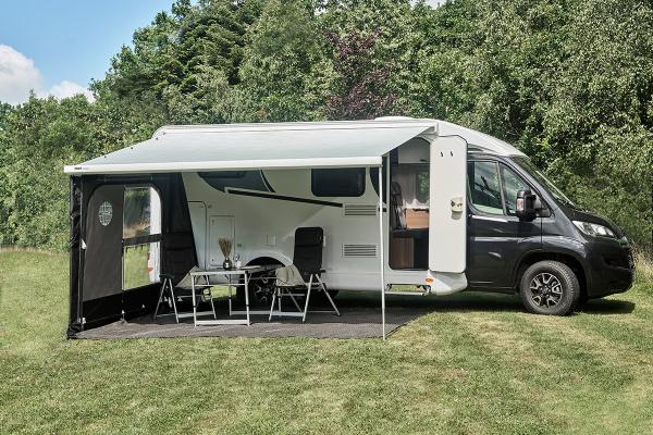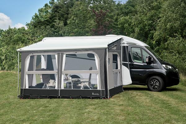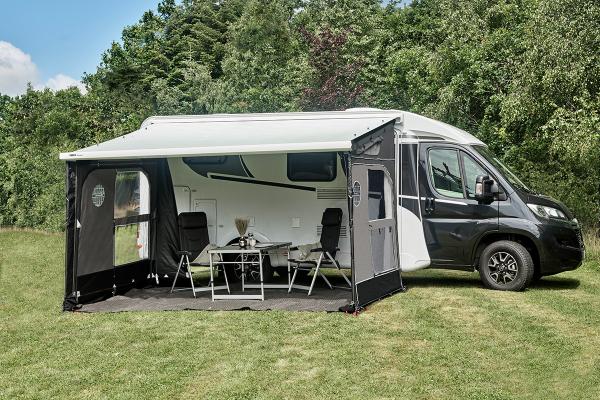 Diese 420 cm breite Front wird einfach in den Keder Ihrer Markisenblende eingezogen. Hierbei ist es egal ob Sie eine Markise von Thule, Fiamma oder Dometic besitzen. In Kombination mit den Buddy Seitenteilen lässt sich ein komplettes Markisenvorzelt oder auch ein Teil Markisenvorzelt gestalten.