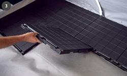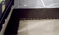 2. Legen Sie die IsabellaFloor-Module etwas versetzt. Beginnen Sie in der linken Ecke und legen Sie den Boden den Wohnwagen entlang. Jede zweite Reihe wird mit einer halben IsabellaFloor-Fliese begonnen. (Für eine noch stabilere Lösung, können die Bodenmodule, wie im Video gezeigt, so gelegt werden, dass sie ineinandergreifen. Dies erfordert jedoch eine Säge.)