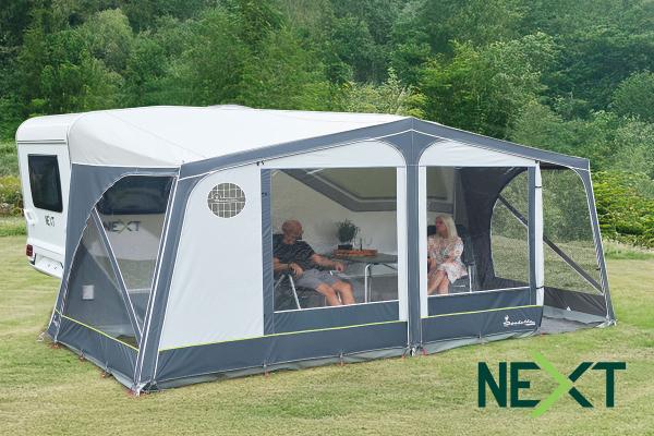 Die Frontteile haben die gleichen Reißverschlüsse wie das Zelt. Durch Öffnen der Reißverschlüsse und Herunterklappen der Frontteile können Sie auch eine Verandalösung schaffen. Die Frontteile haben zwei Eingangstüren und große Fensterpartien.