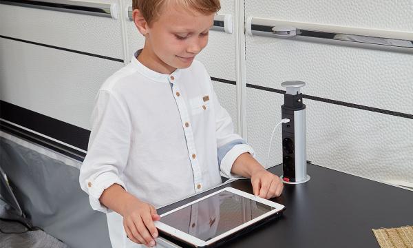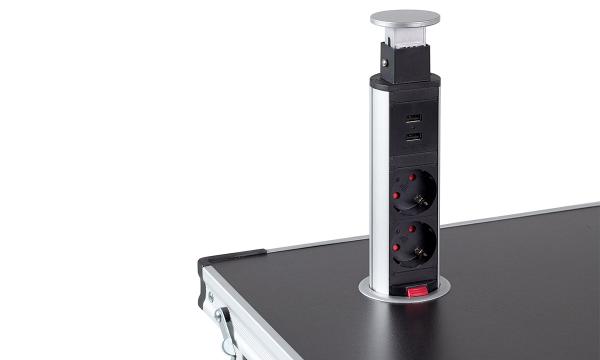Mit diesem cleveren Pop-up-Tower hast du einfachen Zugang zu Strom auf deinem Isabella-Schrank. Er passt in die Isabella-Schränke "Double" und "Single" (Modelle ab 2018) und bietet dir 2 x 230-Volt-Steckdosen (EU) und 2 x USB-Anschlüsse für deine Kaffeemaschine, deinen Toaster oder dein Ladegerät - ohne großen Platz zu beanspruchen.