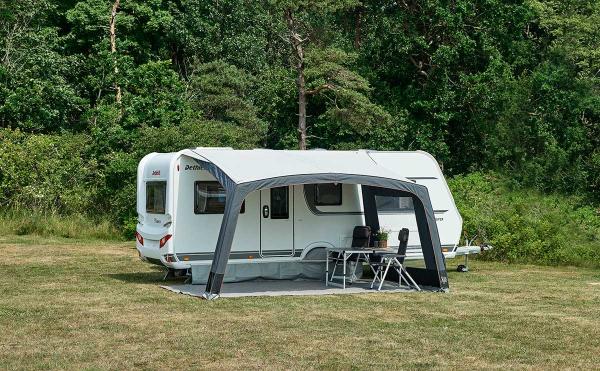 Nemt luftsolsejl til campingvogn.