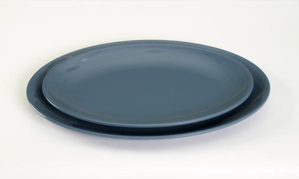 Dette serveringsfade-sæt består af 2 serveringsfade i North Sea Blue.