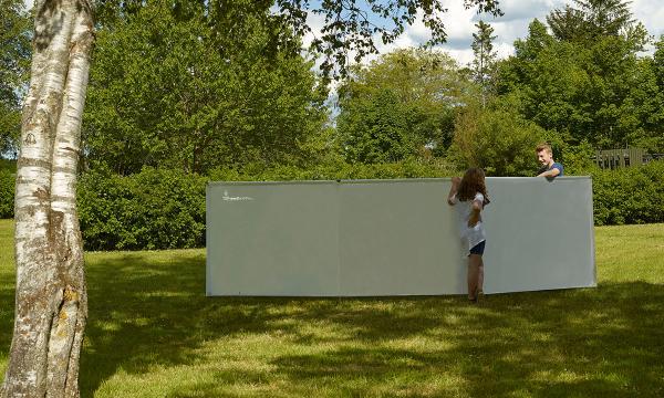 El paravientos está fabricado en IsaLite, un material de poliéster ligero y fácil de limpiar, resistente al viento y a las inclemencias del tiempo.