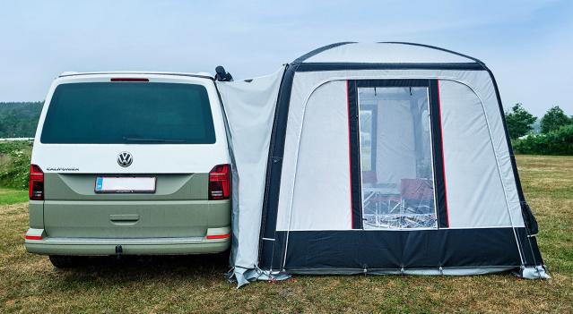 Amplía tu espacio vital con un avance hinchable independiente. En una furgoneta, el espacio puede ser escaso.