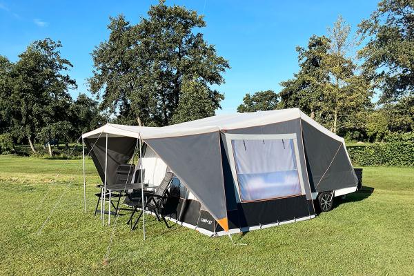 Lorsque vous voyagez avec votre Camp-let, il est toujours agréable d'avoir un peu plus d'ombre et de protection. La solette Sunset empêche le soleil de réchauffer l'espace de vie tout en offrant une protection contre la pluie, ce qui vous permet de profiter d'un espace extérieur confortable et sec à tout moment.