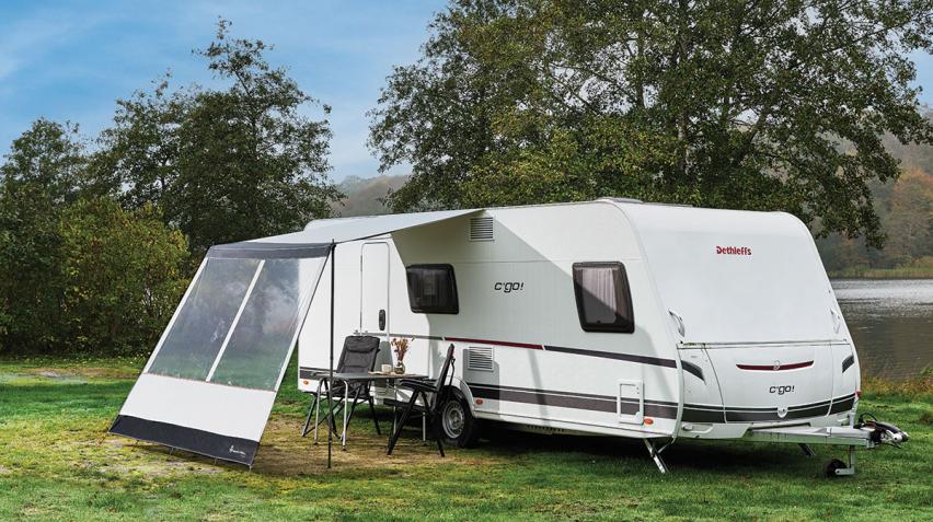 Si vous êtes un campeur itinérant, la solette Loggia est un choix idéal. Elle ne pèse que 8,5kg (pour une largeur de 3 mètres) et 10,2 kg (pour une largeur de 4 mètres) et se fixe directement sur la caravane avant d'être installée à l'aide de 3 barres CarbonX légères.