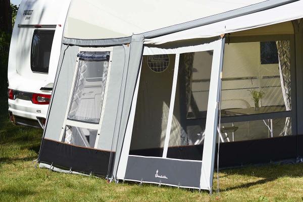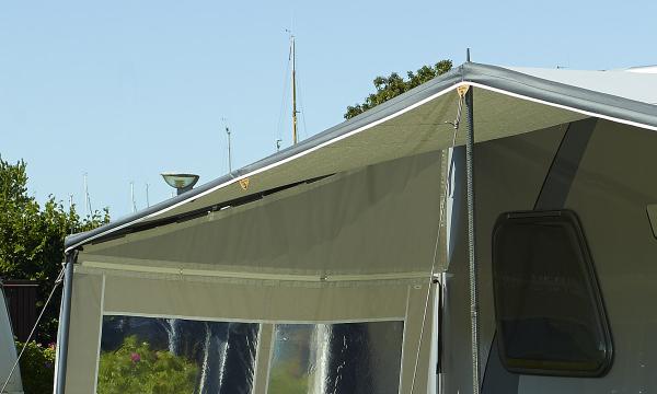 Si vous utilisez le panneau latéral et le pare-soleil Eclipse directement sur la caravane (sans auvent), vous devez acheter un Eclipse Adaptor (261000416) pour assurer une connexion étanche entre le pare-soleil et la caravane.