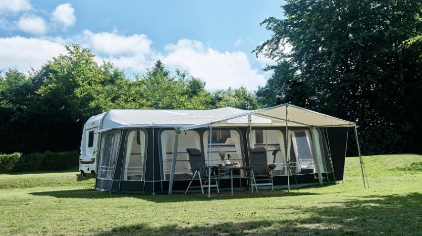 Si votre caravane est équipée d'un auvent coupe-vent, vous pouvez agrandir votre espace extérieur en fixant un Isabella Air Y, Shadow Canopy ou Cosy Corner Levo directement sur le rail de l'auvent coupe-vent.