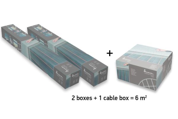 2 x plaques en aluminium de 3 m2 (ajoutez deux boîtes au panier) + 1 x câble chauffant pour 6 m2 de sol (ajoutez une boîte au panier)