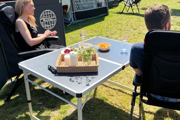 Foldable camping table with aluminum frame. Incl. bag