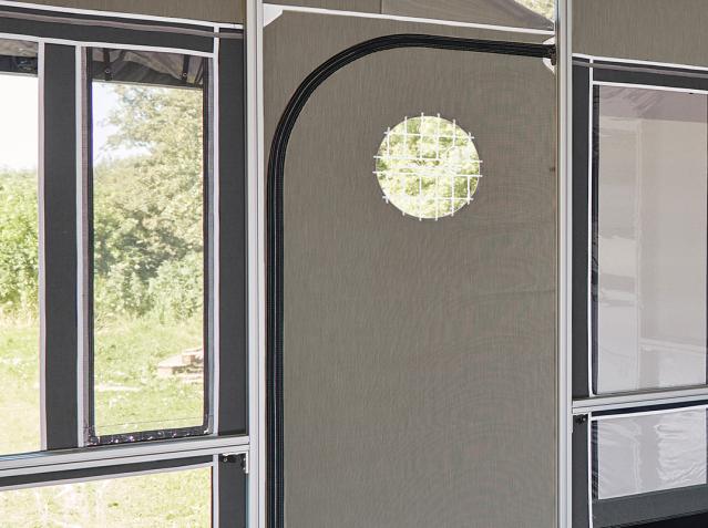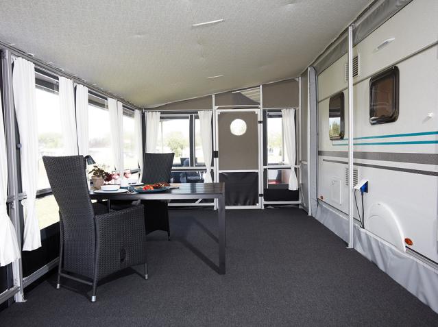 The rear wall of the VILLA can be adjusted to fit caravans of all sizes. This ensures a tight and precise fit and allows you to use the awning freestanding without a caravan.
