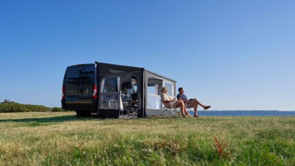 Il pannello frontale di Buddy può essere agganciato ai pannelli laterali di Buddy per creare un riparo o per avere un po' di calore in più in una giornata fresca. Le grandi finestre dei pannelli frontali e laterali danno una visuale libera per godersi l'ambiente circostante.