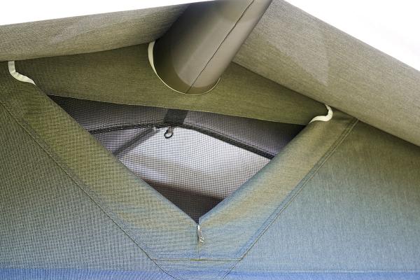 Gestippelde lijnen: Ritssluiting voor uitneembare en neerrolbare tentdelen
