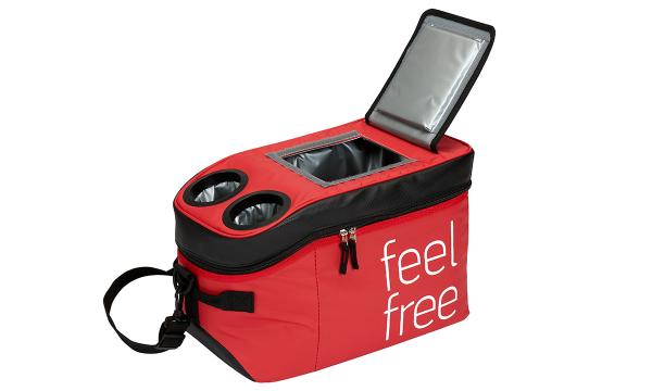 Kylväskan finns i en snygg röd färg med Isabellas logo överst och ”feel free” på ena sidan.